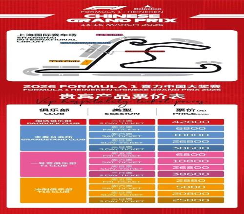就在2025 F1收官之戰前,12月5日,2026 F1中國大獎賽票價(jià)已經(jīng)正式出爐!12月11日上午11:00,賽事票務(wù)銷(xiāo)售也將正式啟動(dòng)!