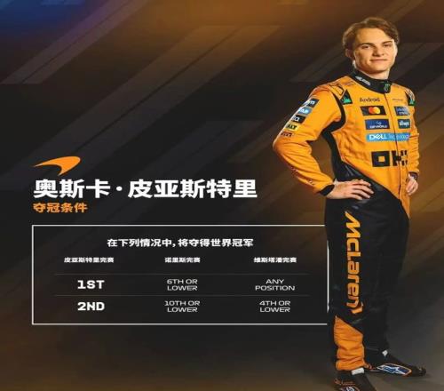 皮亞斯特里則處在最為被動(dòng)的位置。他必須贏(yíng)得比賽,同時(shí)寄望諾里斯跌出前六名。盡管難度巨大,但理論上仍存機會(huì )。這位年輕車(chē)手表示:"我沒(méi)有壓力,也沒(méi)有什么可失去的。"