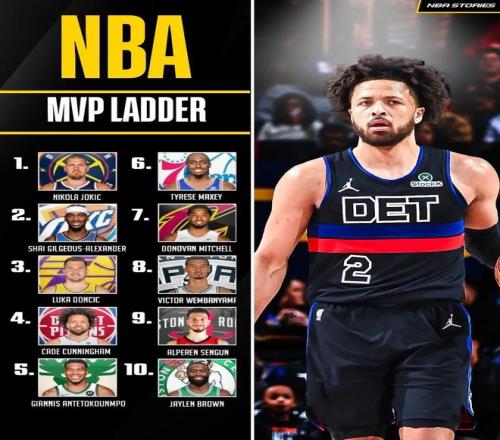 NBA官方公布的最新一期MVP排名當中,約基奇、亞歷山大、東契奇穩居前三,而排在第四的球員從字母哥變成了坎寧安。