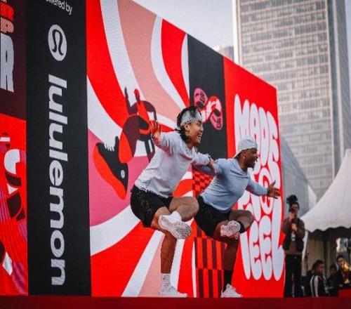 lululemon為這場(chǎng)年度收官之戰打造全新賽事標識與視覺(jué)體系點(diǎn)亮了冬日的濱江。為助力青年跑者賽場(chǎng)馳騁,還精心準備了賽事包。賽事現場(chǎng),lululemon特別打造的互動(dòng)體驗區吸引了數百名大學(xué)生參與。此外,lululemon大使Momo和Roy親臨現場(chǎng),在動(dòng)感的音樂(lè )節拍中,帶領(lǐng)選手賽前熱身、喚醒狀態(tài)。