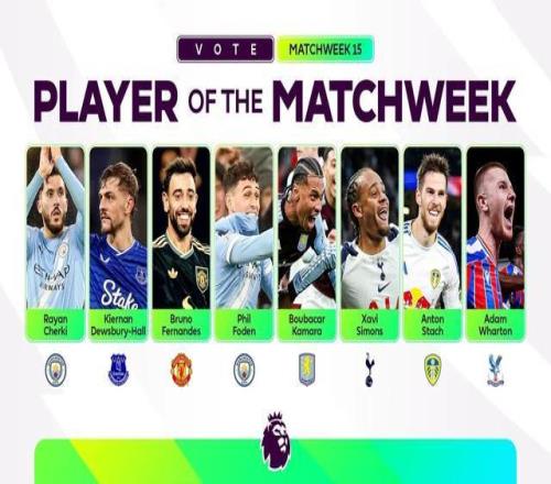 北京時(shí)間12月9日,英超官方公布了聯(lián)賽第15輪最佳球員候選名單,這8名球員為謝爾基、霍爾、布魯諾-費爾南德斯、福登、卡馬拉、哈維-西蒙斯、施塔赫、亞當-沃頓。