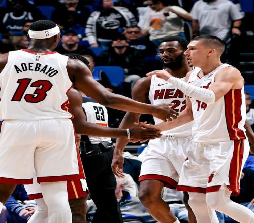 熱火隊首發(fā)陣容:米切爾、希羅、鮑威爾、維金斯、阿德巴約