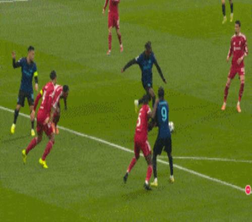 第32分鐘,利物浦角球機會(huì ),科納特頭球接力破門(mén),但因為助攻的?;倏耸智蛟谙?,導致進(jìn)球無(wú)效。
