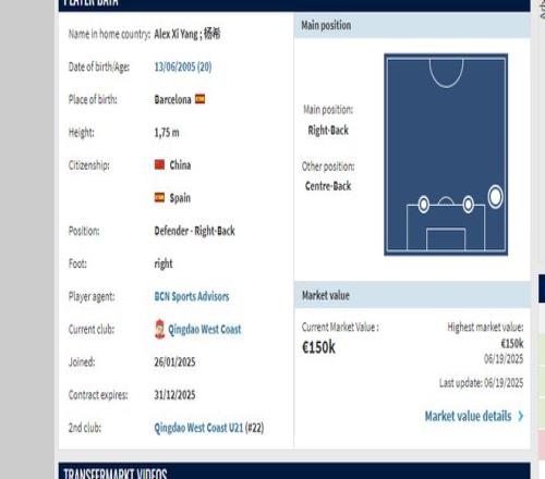 目前,楊希德轉身價(jià)為15萬(wàn)歐,預估也會(huì )漲到25萬(wàn)歐左右。
