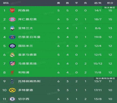 歐冠第6輪結束了9場(chǎng)比賽,最新積分榜如下!