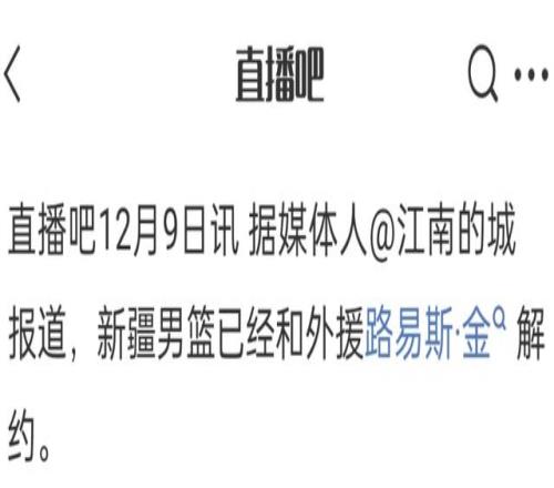 CBA最新消息!新疆男籃裁掉路易斯金,威爾斯或離開(kāi)遼寧