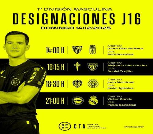 北京時(shí)間12月13日,西班牙足協(xié)公布了西甲第16輪明日4場(chǎng)比賽的裁判名單,維克托-加西亞執法皇馬客戰阿拉維斯。