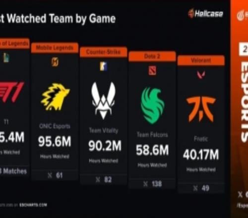 體育資訊12月17日報道宣稱(chēng) 今日外媒統計2025年度收視率最高戰隊(不包含大陸地區),具體如下: