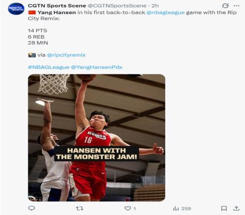 博主:楊瀚森在G聯(lián)賽基本只是第二節獲得一些單打機會(huì ),更多時(shí)間還是往返跑,這實(shí)際上對練體能效果更好,多打比賽就習慣了。
