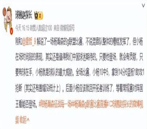 楊瀚森雖然在NBA還是一個(gè)飲水機,但他在G聯(lián)賽已經(jīng)絕對的核心,周琦在G聯(lián)賽甚至都還打過(guò)替補,戰術(shù)地位都不同,楊瀚森得到的鍛煉肯定超過(guò)周琦,如果楊瀚森明年回國打世預賽,那還不亂殺嗎?考慮到八村壘、河村勇輝可能回歸日本男籃,楊瀚森說(shuō)不定真的要回來(lái)打世預賽。