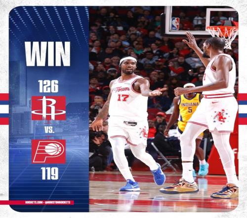 然而,戴維斯完成關(guān)鍵搶斷,時(shí)間所剩不多,印第安納追分無(wú)望。最終,火箭以126比119險勝對手,休斯頓拒絕了28分逆轉,步行者吞下了9連敗。
