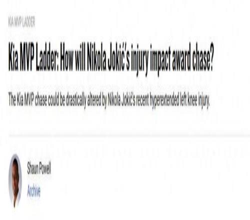 目前唯一阻礙約基奇沖擊生涯第4個(gè)MVP的因素就是傷病問(wèn)題,由于踩到隊(duì)友腳被誤傷,約基奇預(yù)計(jì)將至少缺席一個(gè)月時(shí)間。