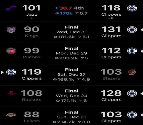 值得一提的是,在祖巴茨受傷的那場(chǎng)比賽以及休戰(zhàn)的五場(chǎng)比賽里,快船全部贏球從而豪取六連勝,因此戰(zhàn)績(jī)從墊底位置飆升至如今的12勝21負(fù)位列西部第11,暫時(shí)落后第十的開拓者兩個(gè)勝場(chǎng)。