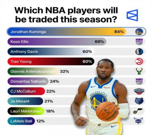 在美媒Polymarket統(tǒng)計的球員交易概率中,字母哥僅以32%排在第五名,遠低于特雷楊(60%)、濃眉哥(60%)、埃利斯(69%)和庫明加(84%)。