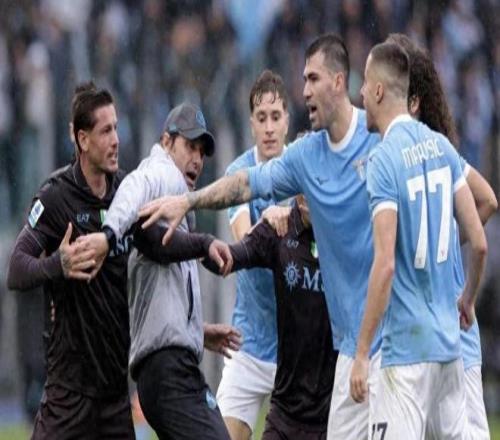 孔蒂沖入球場平息混戰(zhàn)!那不勒斯20拉齊奧,三張紅牌引爆意甲
