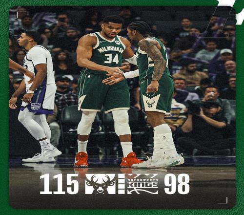 距離終場僅剩2分21秒,密爾沃基鎖定大局。薩克拉門托追分乏力,比賽隨后失去了懸念。最終,雄鹿以115比98完勝對手,還拒絕了26分逆轉(zhuǎn)。密爾沃基實現(xiàn)了2連勝,同時送給對手5連敗。