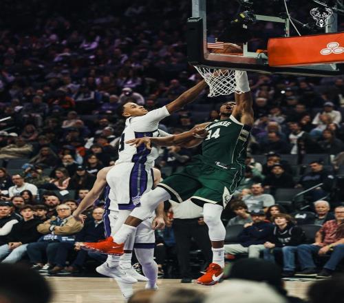 次節(jié)較量,國王隊遠投手感依舊冰涼,字母哥、特納攜手特倫特、波蒂斯率隊連續(xù)掀起得分狂潮。雄鹿內(nèi)外開火,得以將分差擴大至20分。薩克拉門托狀態(tài)低迷,半場打完,密爾沃基以62比44領(lǐng)先。上半場,國王隊3分球11中1。字母哥前2節(jié)7中6砍下了15分。