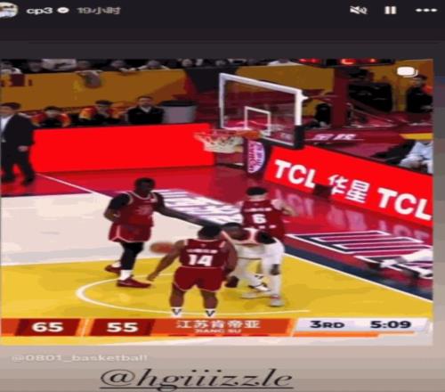 保羅在自己的INS限時(shí)動(dòng)態(tài)里轉(zhuǎn)發(fā)了目前效力于江蘇隊(duì)的前NBA潛力股賈爾斯的勁爆扣籃動(dòng)態(tài)。