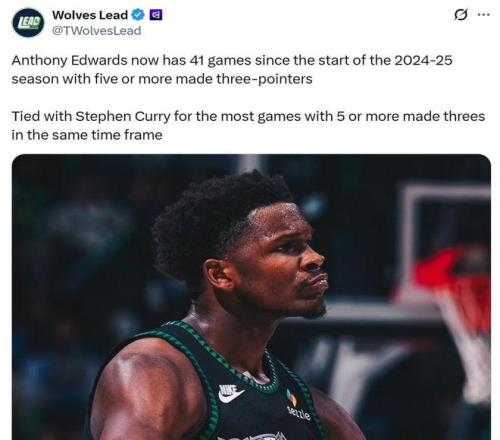 本賽季愛德華茲延續(xù)這一表現(xiàn),本場再度命中5記三分后,近2個(gè)賽季已經(jīng)41次單場命中至少5記三分,成功追平歷史三分王庫里并列同期聯(lián)盟第一。