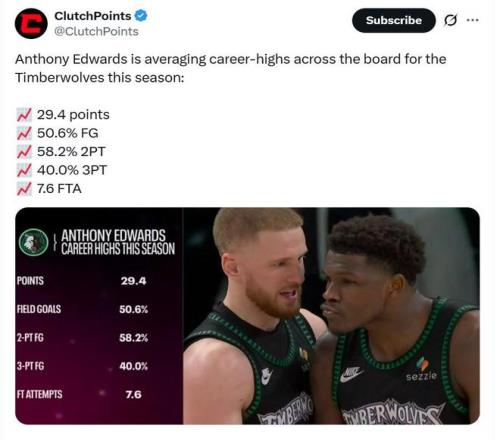 在休賽期放走重要輪轉(zhuǎn)亞歷山大沃克同時(shí)未能完成補(bǔ)強(qiáng)的情況下,森林狼隊(duì)之所以還能高歌猛進(jìn),核心愛德華茲的持續(xù)蛻變與成長是關(guān)鍵。