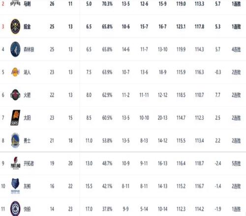根據(jù)西部最新的排名情況,雷霆在以一分險(xiǎn)勝灰熊之后,球隊(duì)遙遙領(lǐng)先。那么剩下的10支球隊(duì)將成為季后賽+附加賽的競(jìng)爭(zhēng)者,并且在西部前七位的爭(zhēng)奪中,戰(zhàn)況特別激烈。