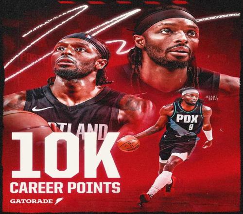 本場比賽,格蘭特在進行到第二節(jié)時已經(jīng)收獲了3分1籃板,職業(yè)生涯總得分達到了10000分,解鎖了“萬分先生”的里程碑。